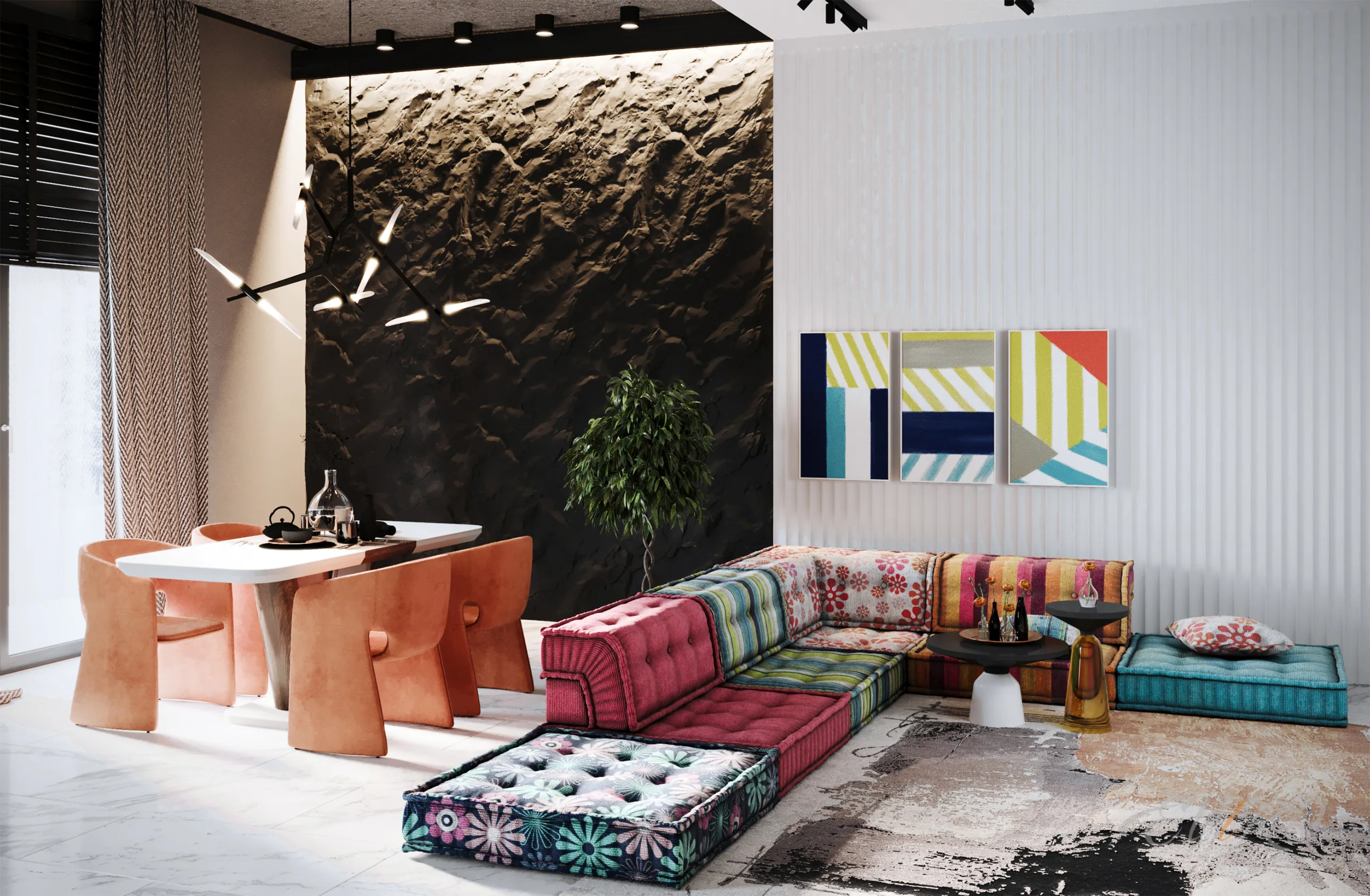 • Рельефные 3D панели в ткани