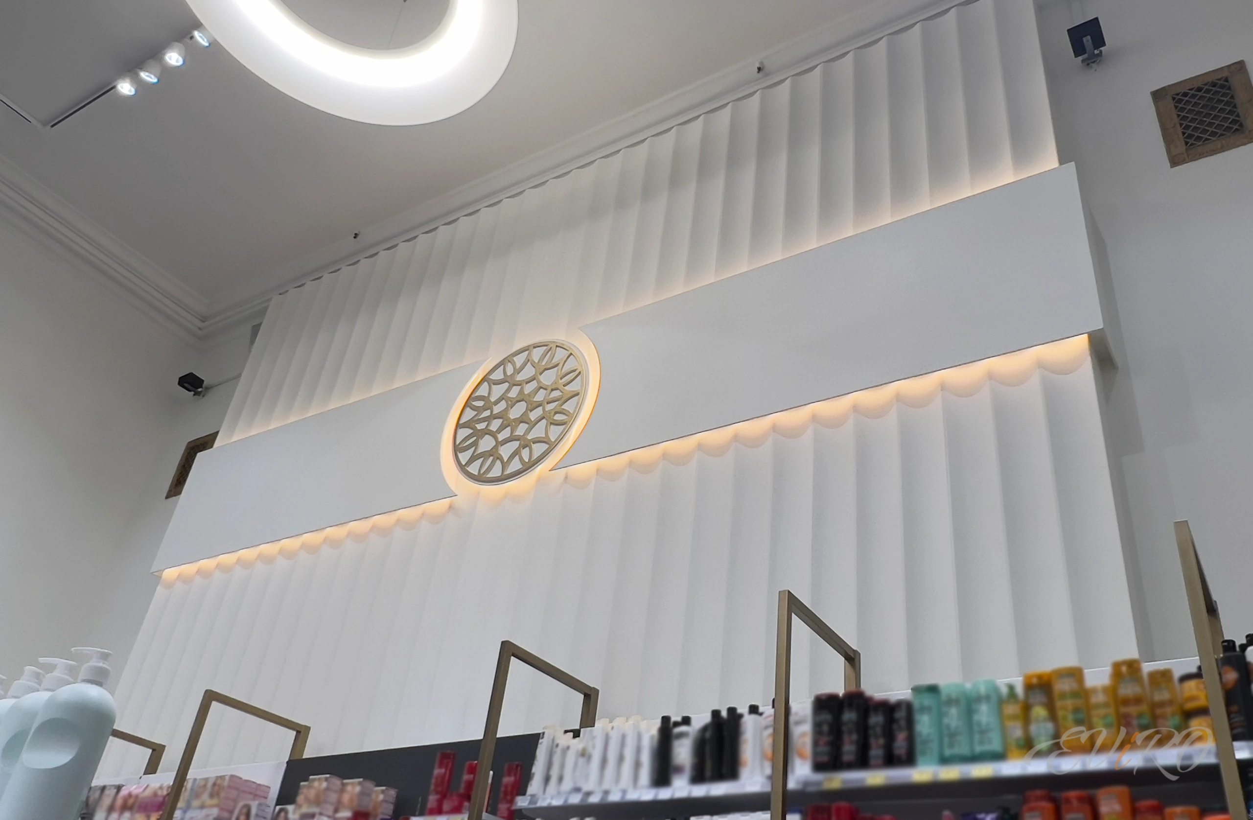 ГУМ — первый крупнейший универсальный магазин г. Минска. Расположен в самом центре столицы. Впервые распахнул свои двери для покупателей и гостей 5 ноября 1951 года. В торговых залах представлен широкий ассортимент товаров известных белорусских и иностранных брендов. ГУМ на протяжении всей своей деятельности не просто торговый объект, а магазин-новатор. Но популярность торгового центра зависит не только от качества обслуживания и уровня подготовки персонала. Важном фактором в привлечении посетителей является его интерьер. Для того, чтобы сделать торговый центр еще более современным, стильным и популярным, компанией EViRO была разработана коллекция гипсовых 3d панелей для облицовки стен «Afina». Такой отделочный материал представляет собой по-настоящему беспроигрышный вариант. Во-первых, выглядит он очень эстетично. Во-вторых, он предельно практичен. В-третьих, полностью экологичен и безопасен для здоровья человека, а это принципиально в зданиях с повышенной посещаемостью. Таким образом можно отметить, что интерьер, в котором присутствует современная отделка, привлекает покупателей, выделяет бизнес на фоне конкурентов и способствует увеличению продаж.